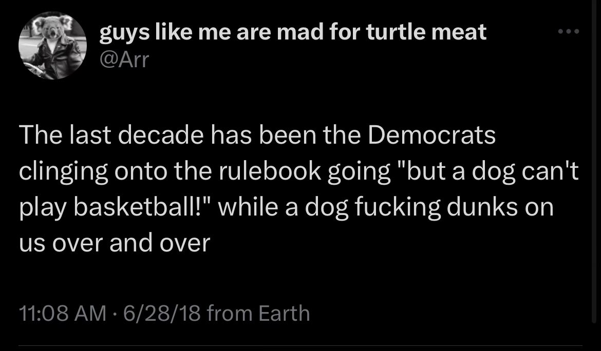If we just fall back on, "Oh, they're not following the rules," we're not going to get anywhere because, of course, they're not following the rules! That's the only way they can win. That's the only reason they got where they are now. If they weren't hypocrites, they wouldn't be conservatives because you cannot follow that kind of ideology without being logically inconsistent.